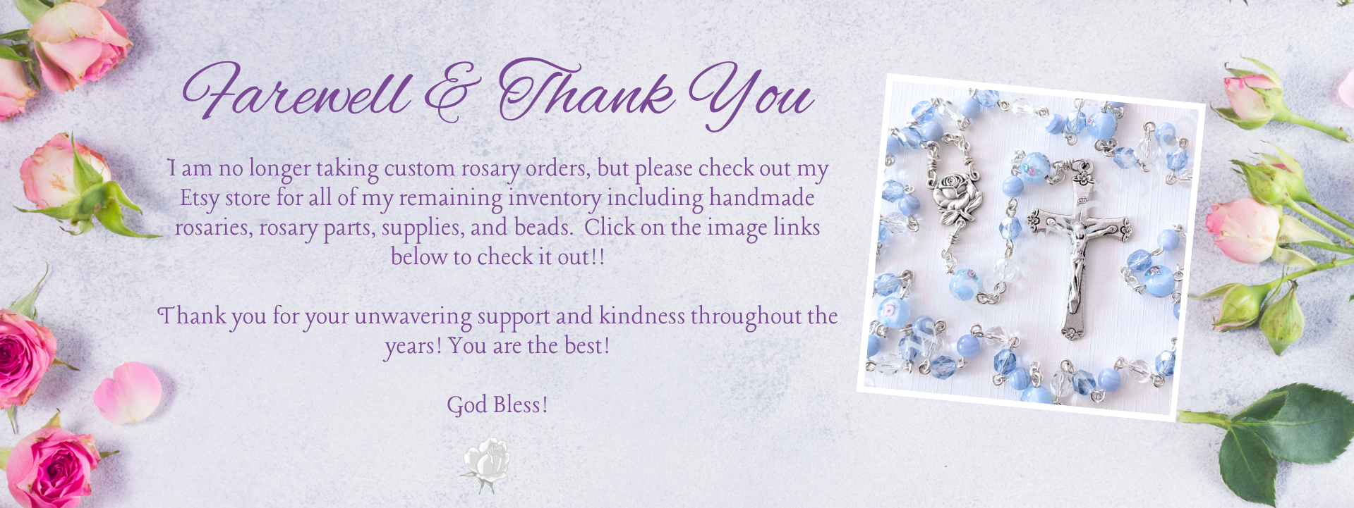 All of my remaining beads, parts, medals and handmade rosaries can be found in my Etsy Store. The “MAKE ME AN OFFER” feature is active for those interested in large amounts of inventory!