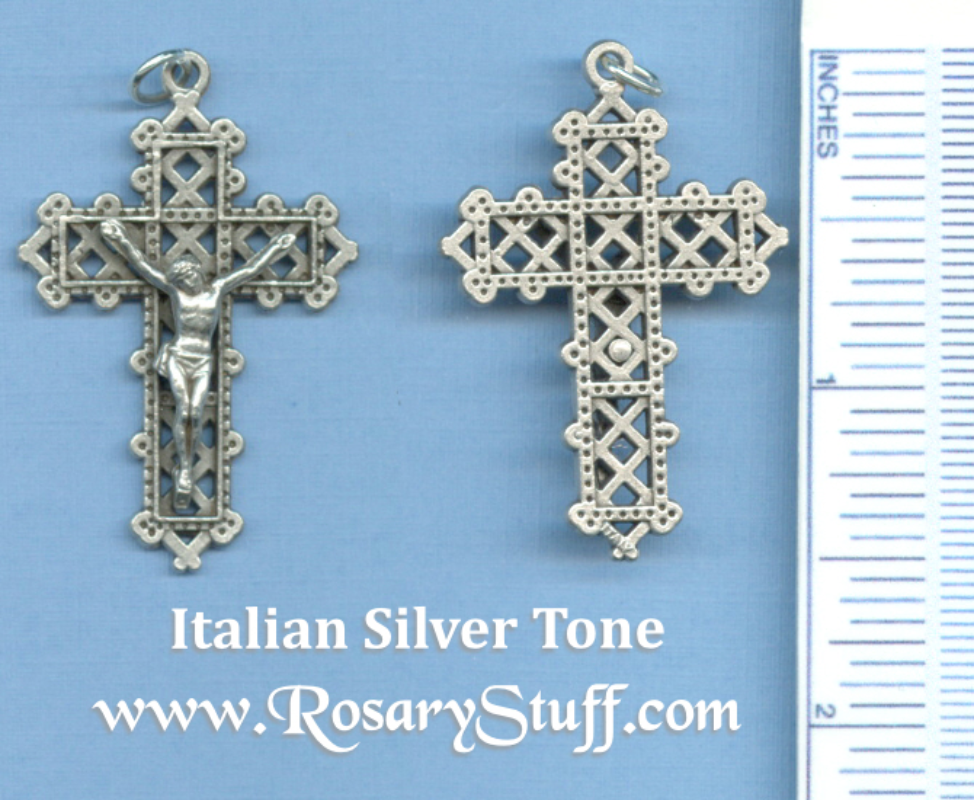 Latticework Crucifix Slightly over 1 1/2″ tall (including top loop) and just over 1″ wide