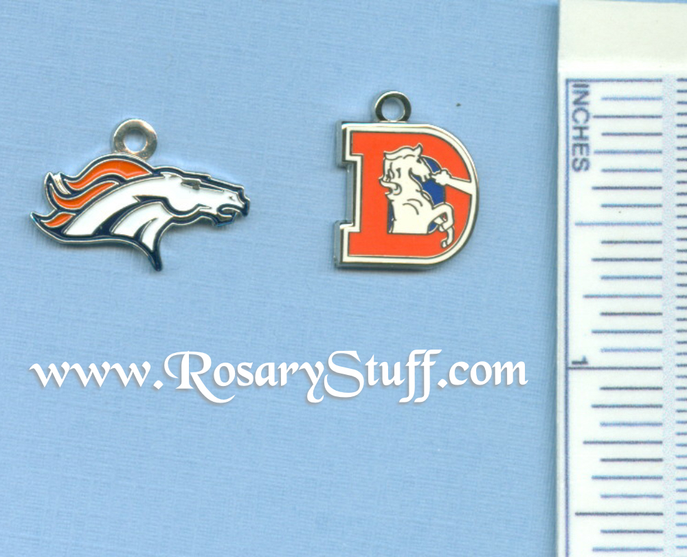 Denver Bronco Logo Charms The original logo is approximately 1/2″ tall including ring and 3/8″ wide. The new logo charm is approximately 1/2″ tall including the ring by about 3/4″ wide.