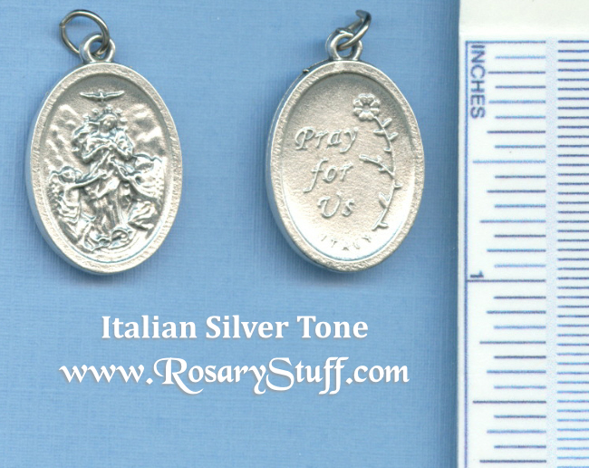 Our Lady Undoer/Untier of KnotsĀ Medal A little over 1″ tall and wide (including ring) by a little over 5/8″ wide.