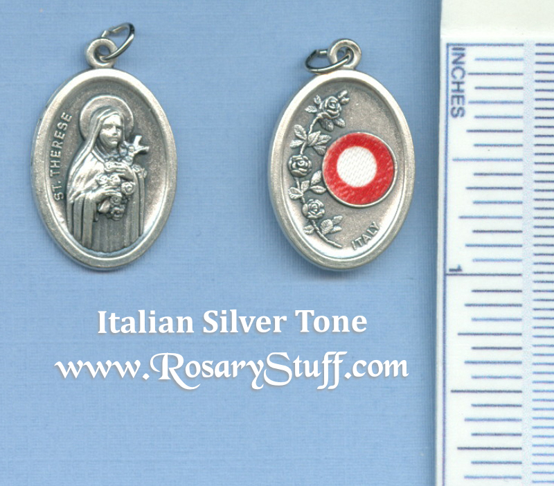 St. Therese of LisieuxRelic Medal 1″ tall (including the ring) by 5/8″ wide. Saint Therese is the patron of the missions.